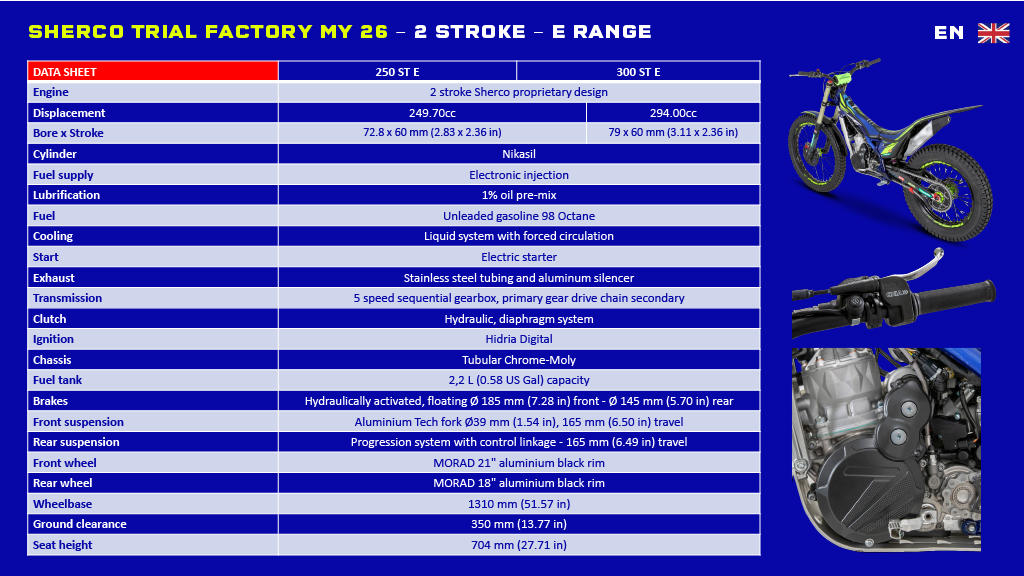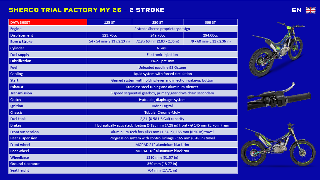 SHERCO ST Factoryシリーズは、2ストロークエンジンのレスポンスの良さと柔軟性を高く評価するすべてのトライアルバイク愛好家の為に開発されました。